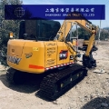 Basic Parameters: Total machine weight is 7350kg, bucket capacity is 0.3m³, rated power is 55kW/2000rpm, engine model is Isuzu 4JG3X, swing speed is 11.5rpm, travel speed (high/low) is 4.4/2.4km/h, climbing ability is 70% (35°), ground pressure is 33kpa, bucket digging force is 56kN, and arm digging force is 38kN. Overall Dimensions: Total length (during transportation) is 6120mm, total width (transportation/operation) is 2220mm, total height (during transportation) is 2675mm, upper width is 2040mm, dozer blade height is 405mm, standard track shoe width is 450mm, track gauge (transportation/operation) is 1750mm, minimum ground clearance is 380mm, tail swing radius is 1800mm, and track length is 2820mm. Working Range: Maximum digging height is 7015mm, maximum dumping height is 5110mm, maximum digging depth is 4065mm, maximum vertical digging depth is 3335mm, maximum digging radius is 6240mm, minimum swing radius is 1720mm, maximum height at minimum swing radius is 5505mm, maximum ground clearance when the dozer blade is lifted is 480mm, and maximum sinking depth of the dozer blade is 417mm.