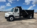 2019 Freightliner M2 106 4x2 S/A Dump Truck Cummins B6.7 240 6 Cylinder 6.7 L Diesel 240 hp Engine, 2019 US EPA Label, Requires Diesel Exhaust Fluid, 7606 Engine hrs, Exhaust Brake, Allison 3000 Automatic Transmission, 12000 lb Front Axle, 23000 lb Rears, 35000 lb GVWR, Air Ride Cab, 11R22.5, Spring Suspension, PTO, Global Excotrans 13 ft 6 in Long x 3 ft 2 in High Steel Body, Round Bottom, Electric Roll Tarp, Pintle Hitch