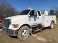 2004 Ford F-650 XLT 4x2 Extended Cab Service Truck Cummins ISB 6 Cylinder 5.9 L Diesel Engine, Air Conditioner, Cruise Control, 7-Speed Manual Transmission, 8500 lb Front Axle, 17500 lb Rears, 26000 lb GVWR, 11R22.5 Front Tires, 11R22.5 Rear Tires, Spring Suspension, 180 in Wheelbase, PTO, 11 ft 0 in Body, Hydraulic Stabilizers, Stellar 10620 10000 lb 3 Section Hydraulic Crane, Stellar SRS-40 40 cfm Hydraulic Air Compressor, Miller Bobcat 260 11 kW 260 A Gasoline Welder. to see more information.