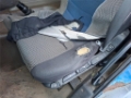 Deformation and severe corrosion in several places, Significant play in the pins of the rear working arm - replacement required, Clogged body recycling screen (not used) - cleaning required, Remote control of the arm sometimes does not work - remote control repair required, Torn left front seat, Windshield - small cracks, Damaged front part from stones, Operation wear and damages, Scratches on the body, Total corrosion of the cab, Worn interior