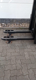 Mitgänger inkl. Sensilift und Kriechgeschwindigkeit, Maß über die Gabeln 570 mm, Fingerschutz Plexiglas, Gabelrollen Tandem, Stützrad Premium, Antriebsrad Friction, Display mit Lastanzeige, Hupe PIN-Code