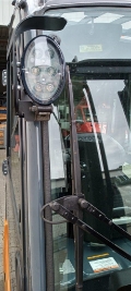 SE-Bereifung abriebfrei, Minihebel, Fahrtrichtungsumschalter in der Armlehne, blaues Warnlicht nach hinten, akustisches Rückfahrsignal, Grammer-Sitz MSG 65, Arbeitsscheinwerfer vorne und hinten, Panoramaspiegel, Hupe in der Armlehne, Klemmbrett, Schlüsselschalter