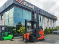 Uwaga dla klienta ostatecznego: Wózek widłowy do wąskich korytarzy, wysokiego składowania komisjoner Linde K rok produkcji 2019 udźwig 1000 kg maszt triplex wys. podnoszenia masztu +/- 8060 mm wys. konstrukcyjna masztu +/- 4360 mm napęd elektryczny waga bez baterii +/- 5547 kg waga baterii +/- 995 kg bateria używana, 48 V / 775Ah ZDJĘCIA POGLĄDOWE, WÓZEK W TRANSPORCIE Wózek widłowy z obrotową głowicą Linde K zapewnia dużą wydajność kompletacji i obsługi procesów w magazynach wysokiego składowania. Umożliwiają to wydajne układy napędowe: wózek może jednocześnie poruszać się i podnosić. Ponadto, nawet na dużych wysokościach, prędkość jazdy pozostaje duża, podobnie jak poziom udźwigu resztkowego. Dostępne są różne systemy wspomagające, które pomagają precyzyjnie poruszać się po magazynie lub unikać przeszkód. Linde System Control dodatkowo usprawnia ten proces: w zależności od wersji system dostosowuje prędkość podnoszenia i jazdy adekwatnie do ciężaru transportowanego ładunku.